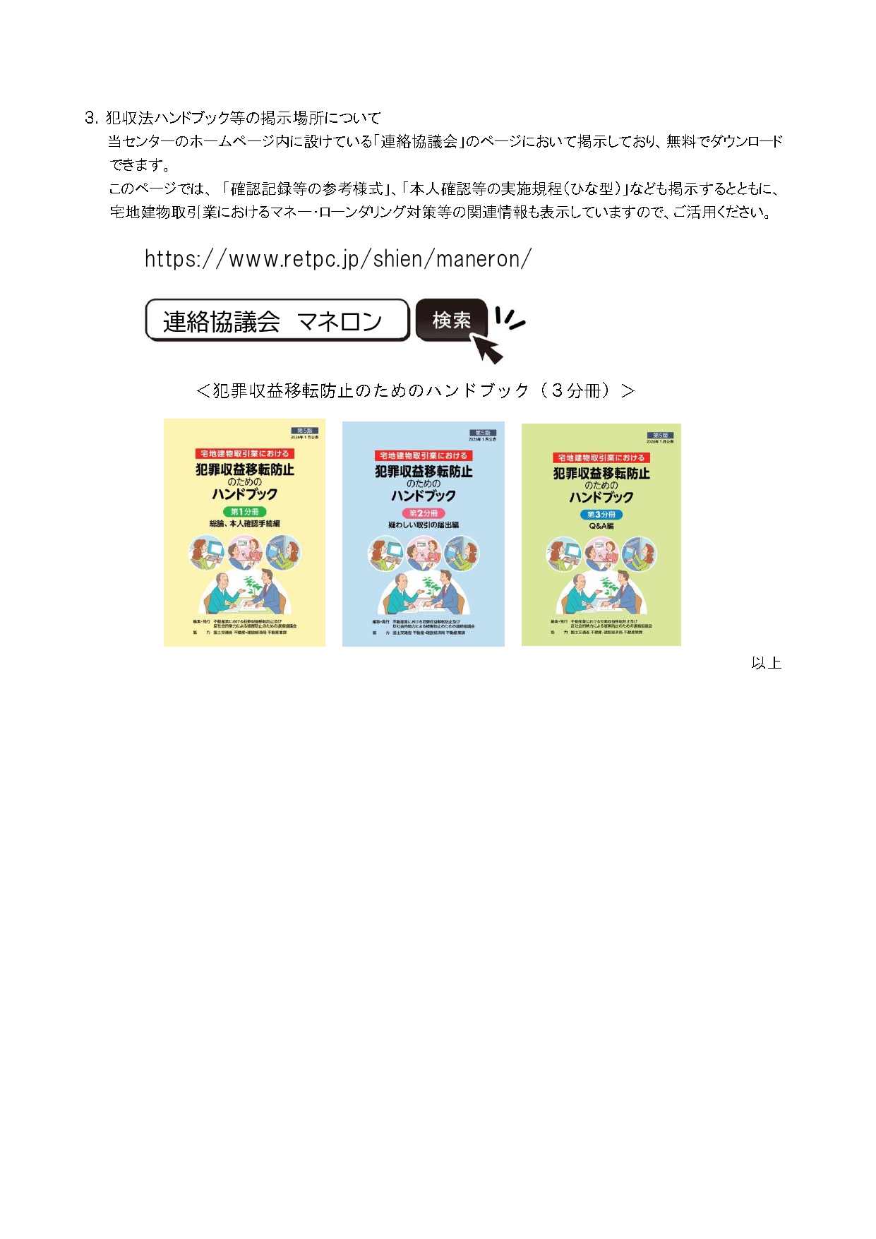 不動産流通推進センターからのお知らせ 「宅地建物取引業における犯罪収益移転防止のためのハンドブック」 改訂第5版を公開しました