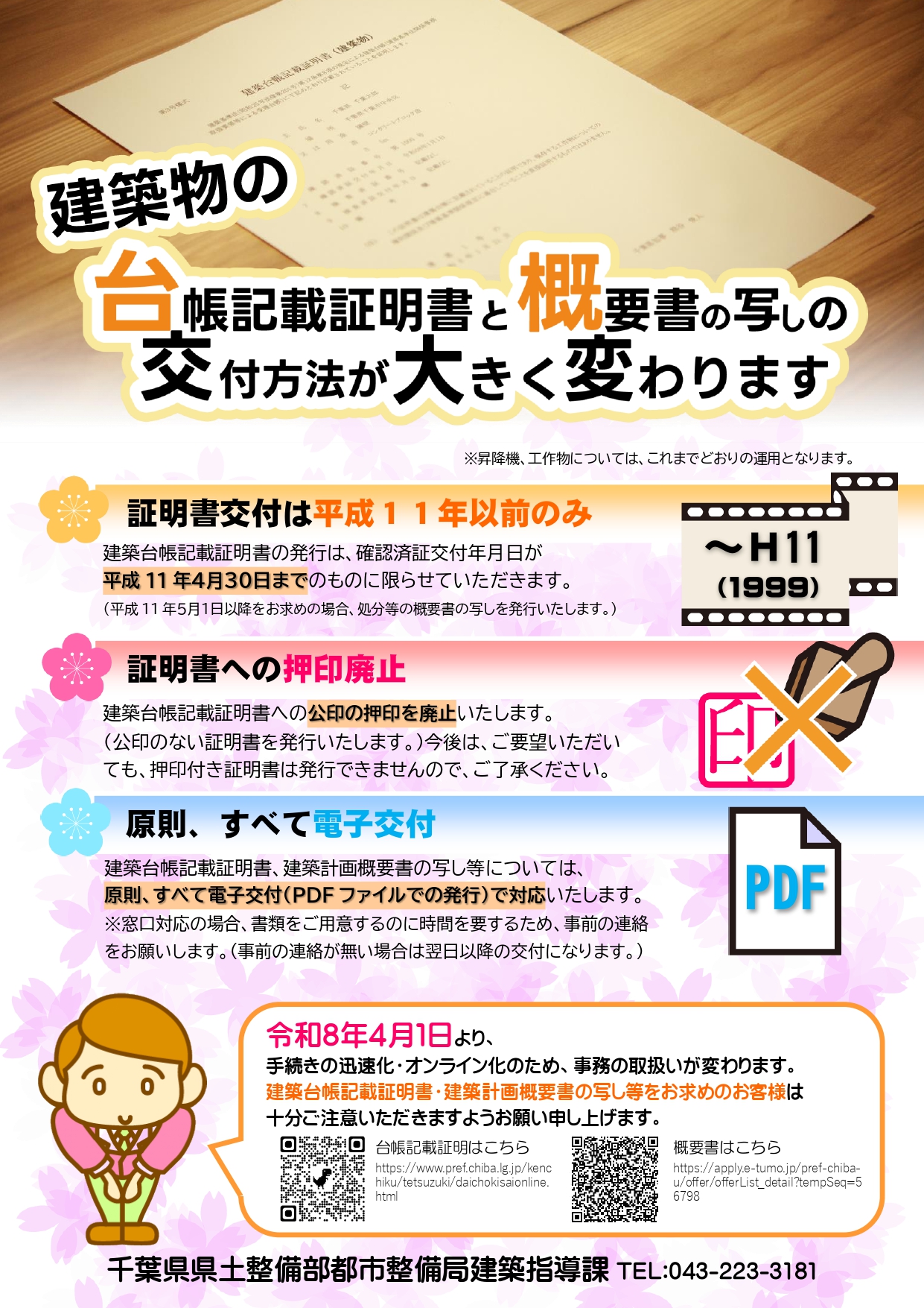千葉県庁からのお知らせ/建築物の台帳記載証明書と概要書の写しの交付方法が大きく変わります